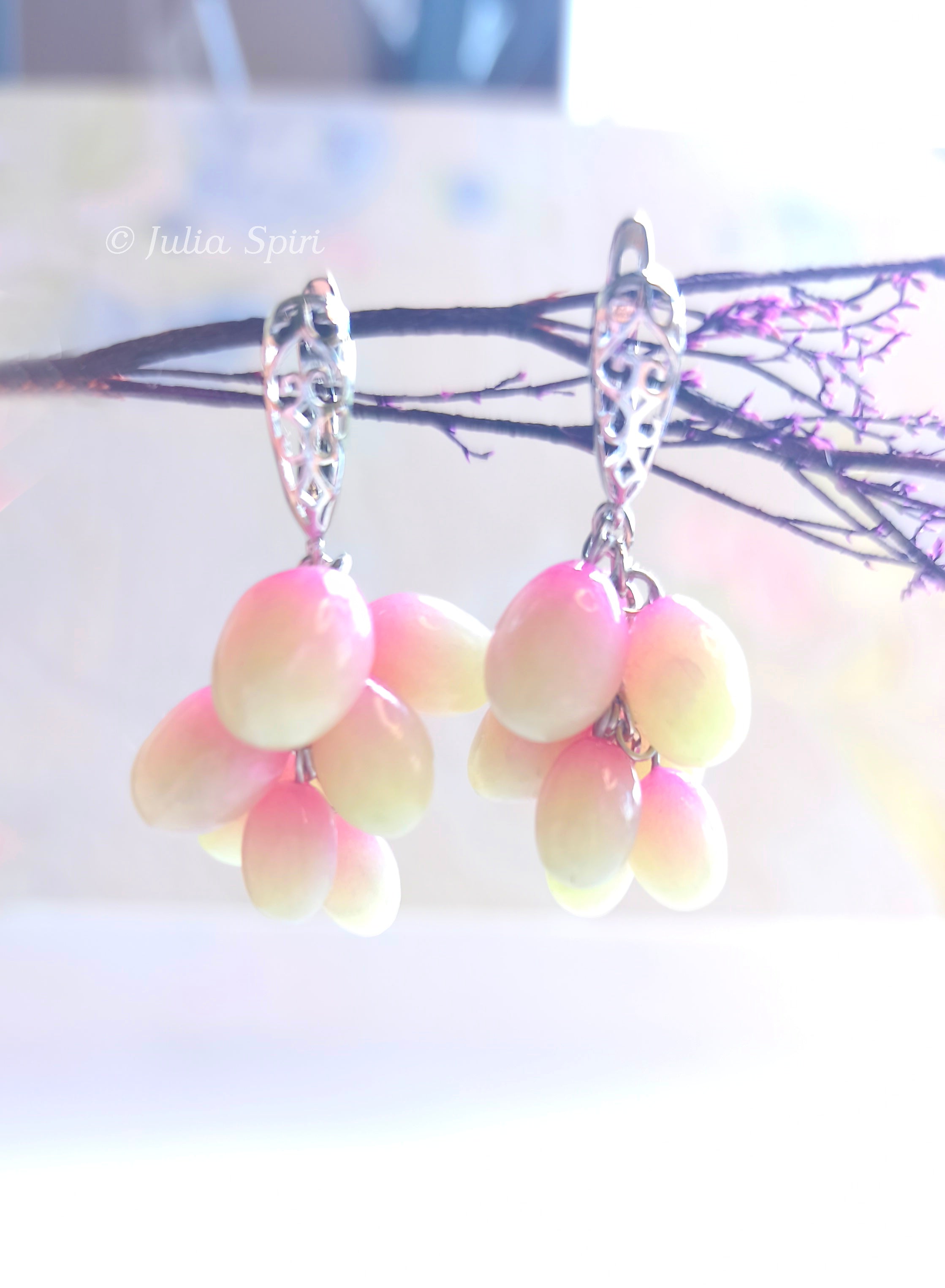 Handmade Polymer Clay Earrings: "Grape Cluster " made entirely by hand with a lot of love. Polymer clay is kiln-fired at 130ºC, and then it becomes a very resistant material, so the flowers will not break.