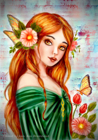 Grayscale Coloring Page, Fantasy Girl. A Fairy's Grace