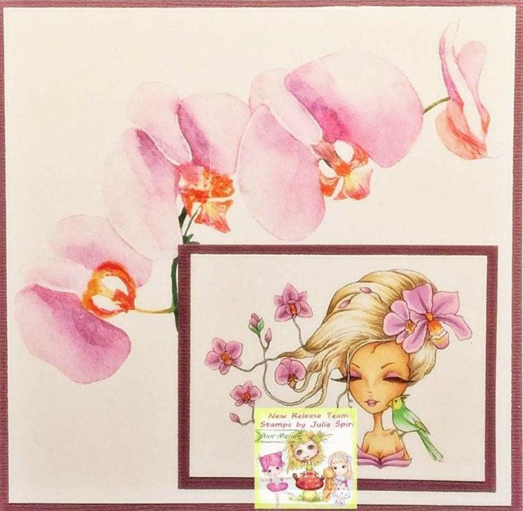 Coloring page, Fantasy Girl with flowers. Orchids