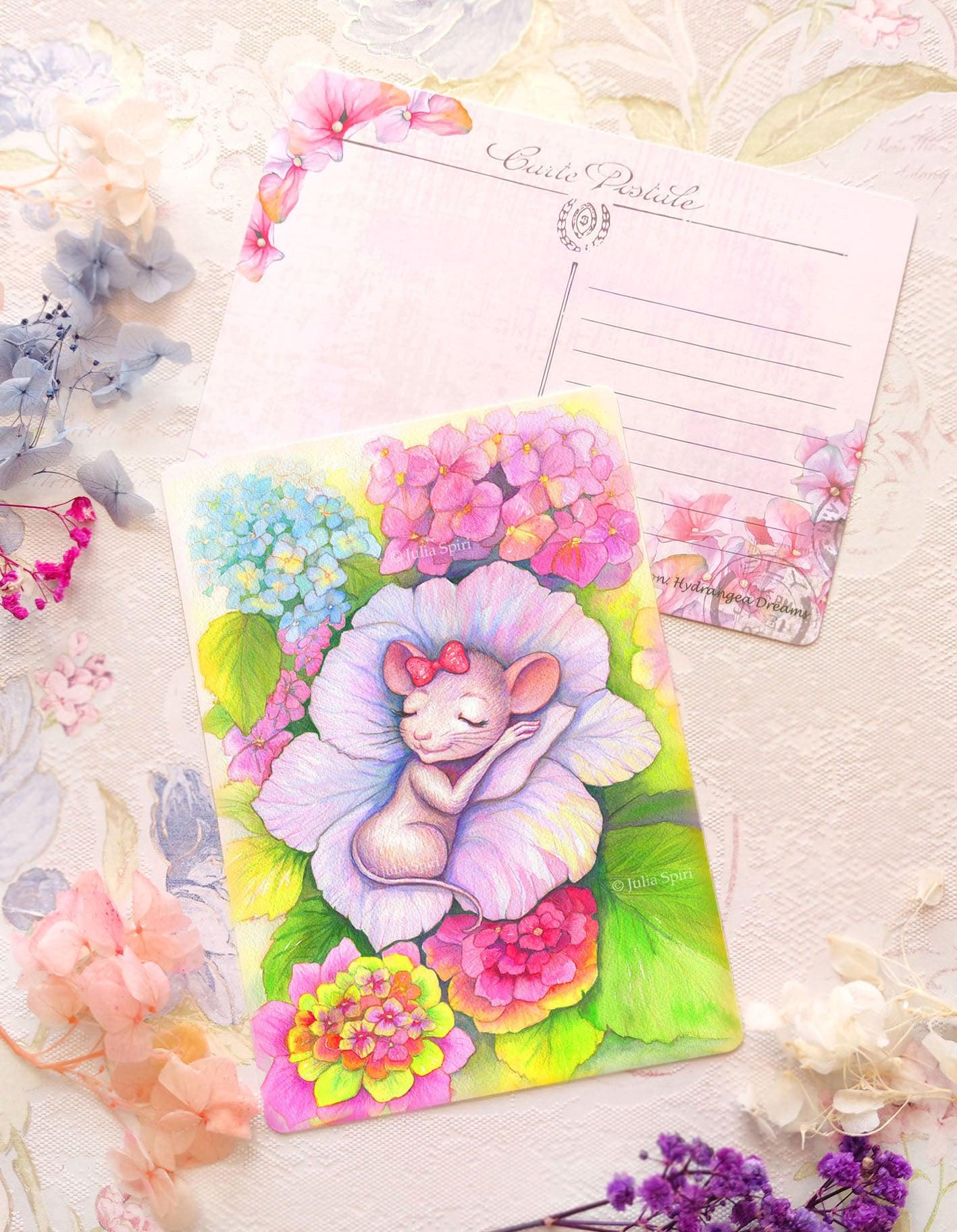 Postcard: "A Hydrangea Bed for the Sleeping Sweet Mouse." You will receive Physical Goods.