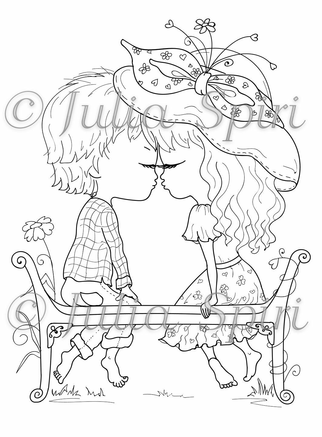 Coloring page, Boy and Girl in Love. The First Kiss