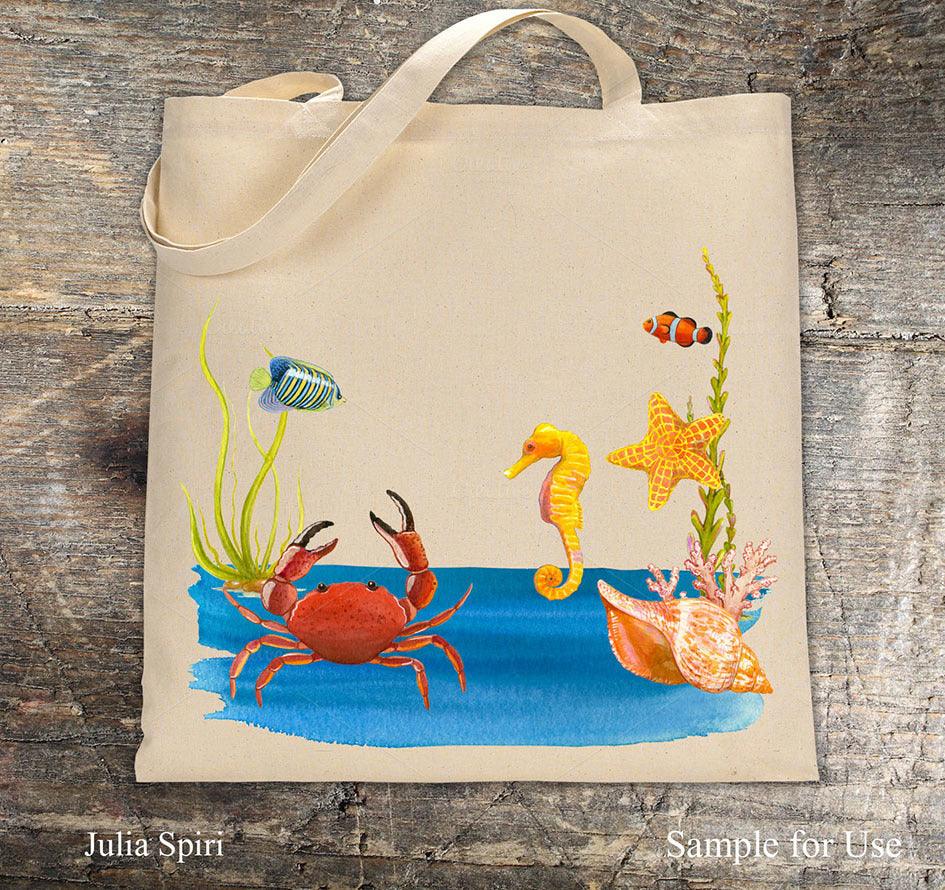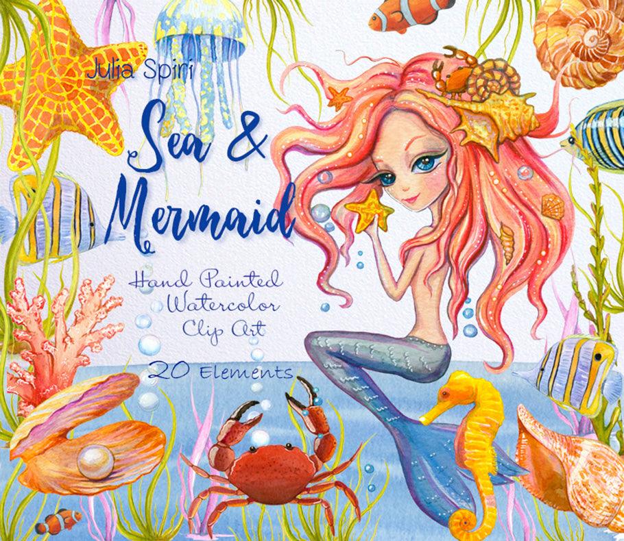 Watercolor Hand Painted Seren, Sea Clip Art. Sea & Mermaid