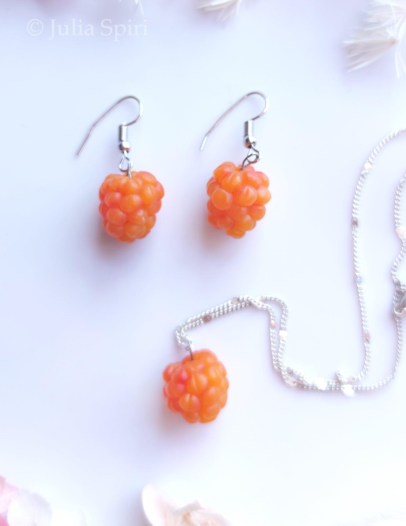 Handmade Polymer Clay Earrings and Necklace. Yellow Raspberry