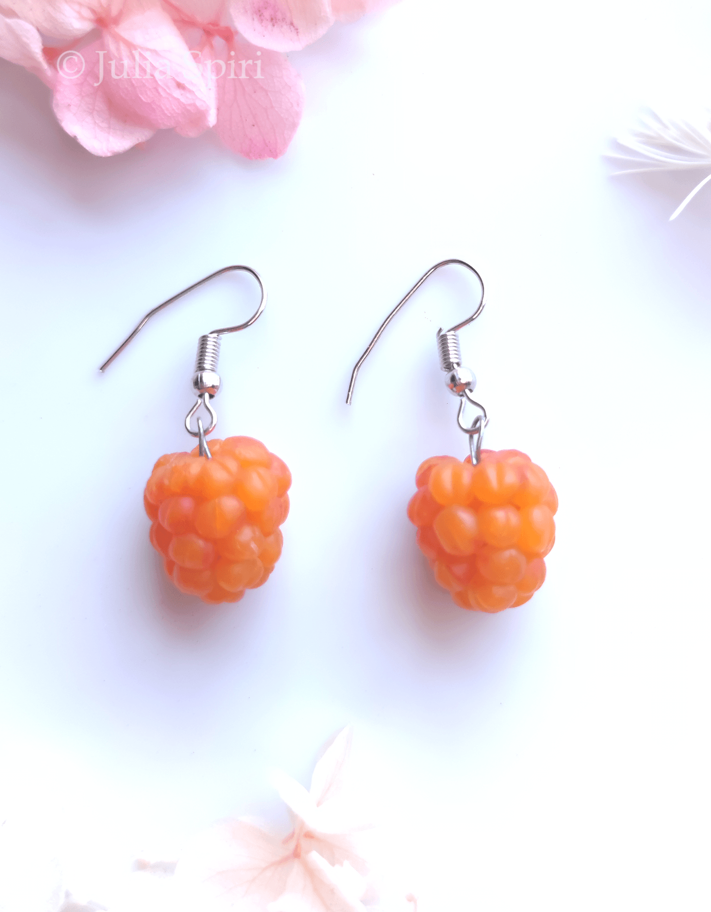 Handmade Polymer Clay Earrings: "Yellow Raspberry" made entirely by hand with a lot of love. Polymer clay is kiln-fired at 130ºC, and then it becomes a very resistant material, so the raspberries will not break.