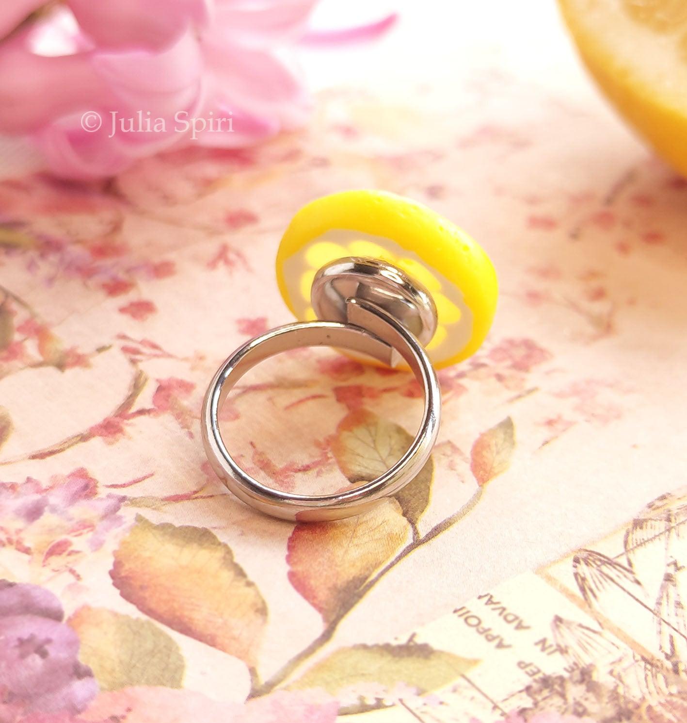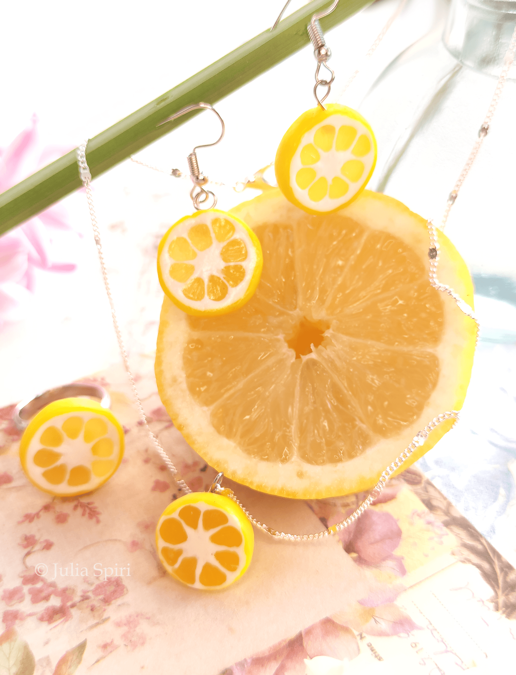 Handmade Polymer Clay Earrings, Necklace and Ring. Lemon