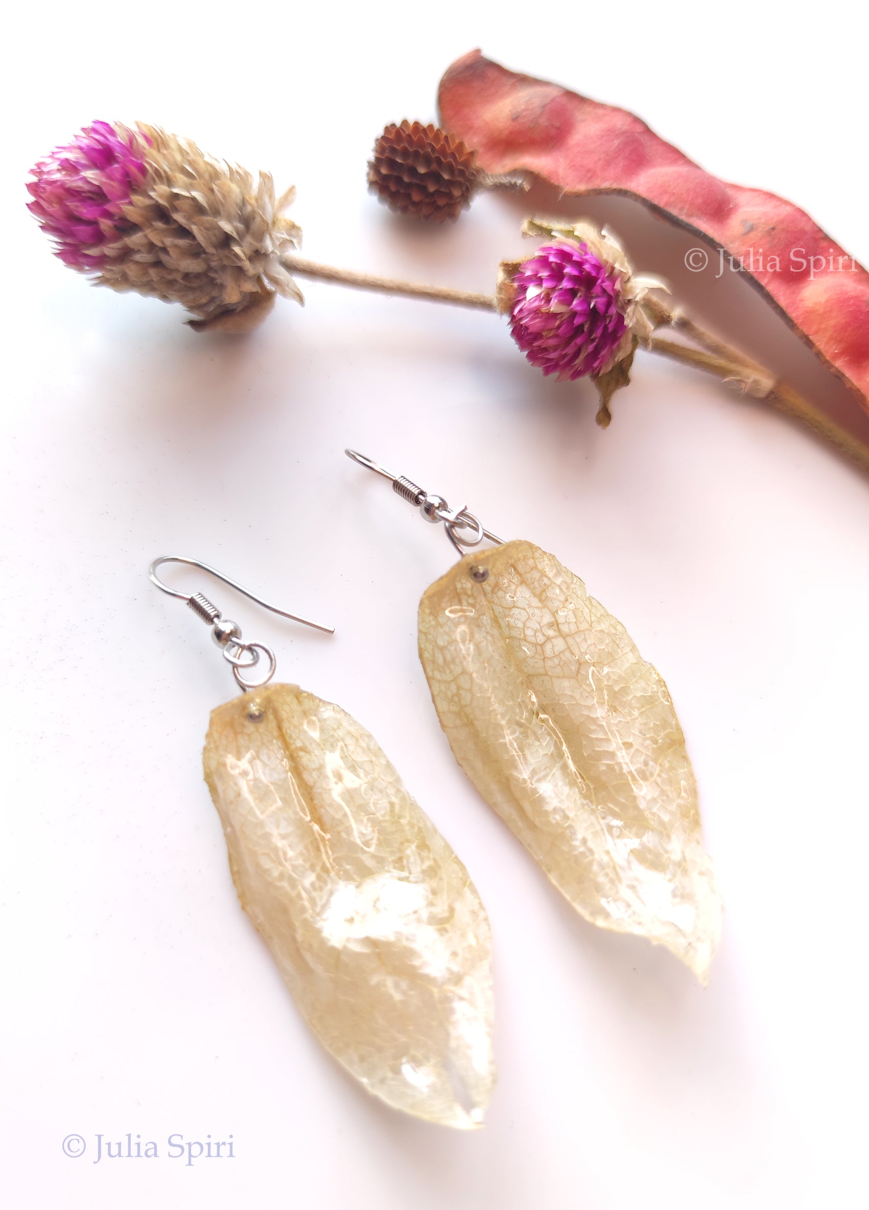 Handmade UV Resin Earrings with Natural Elements. Dried Leaves