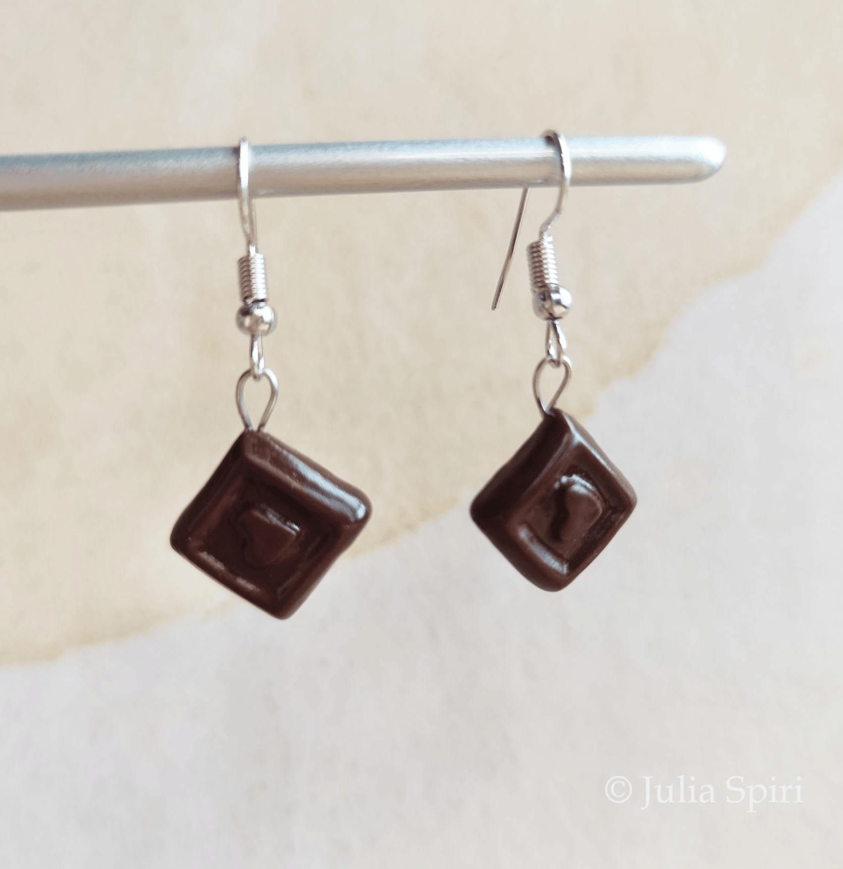 Handmade Polymer Clay Earrings. Chocolate and Waffles