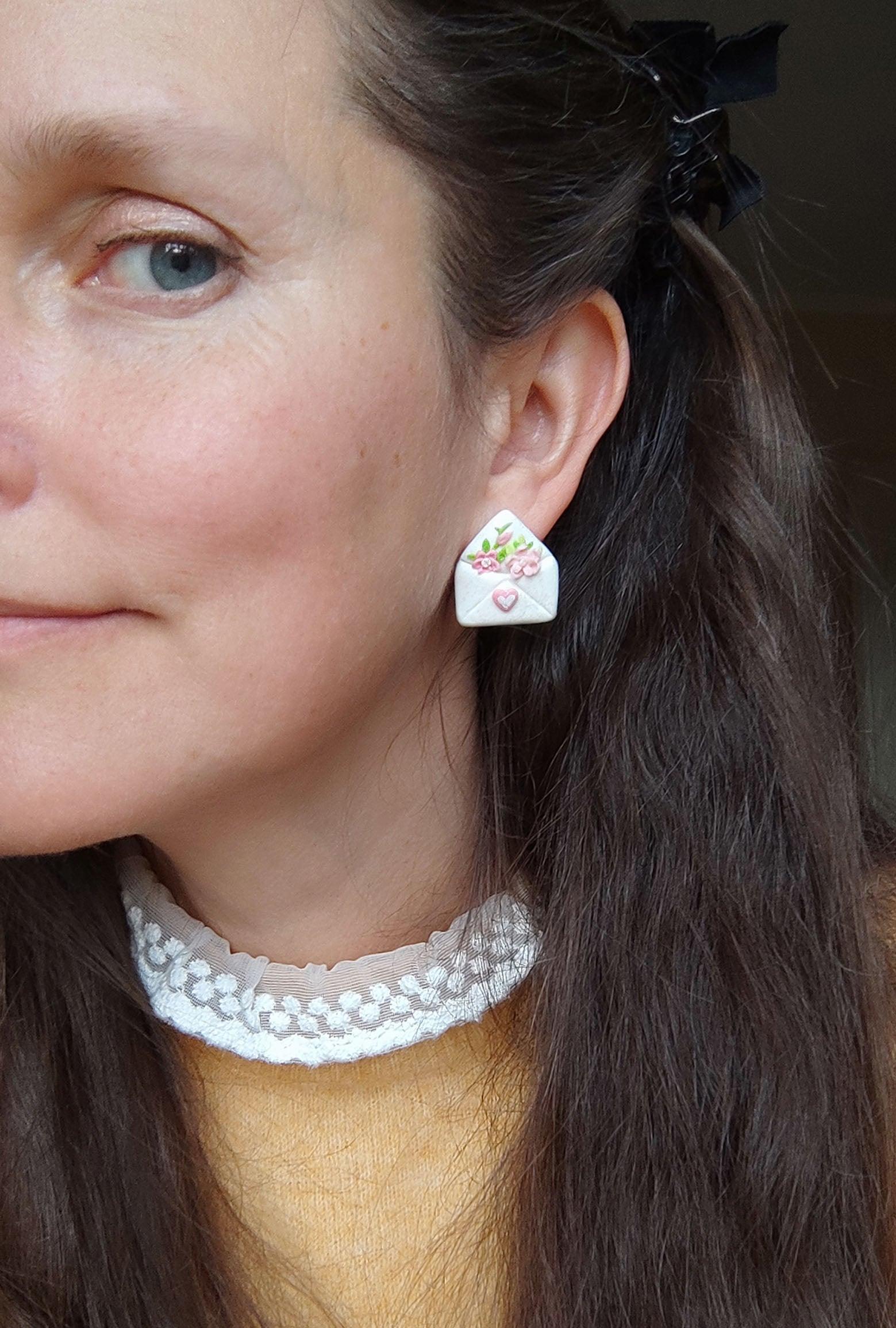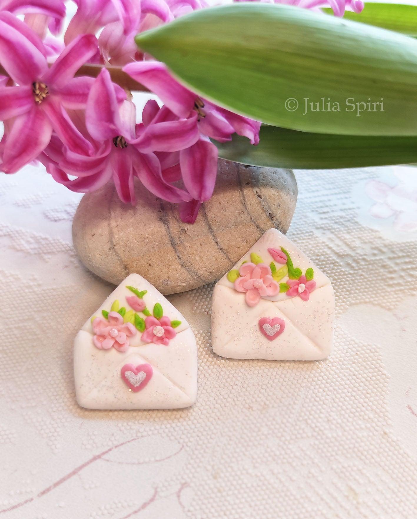 Handmade Polymer Clay Earrings. Romantic Envelopes