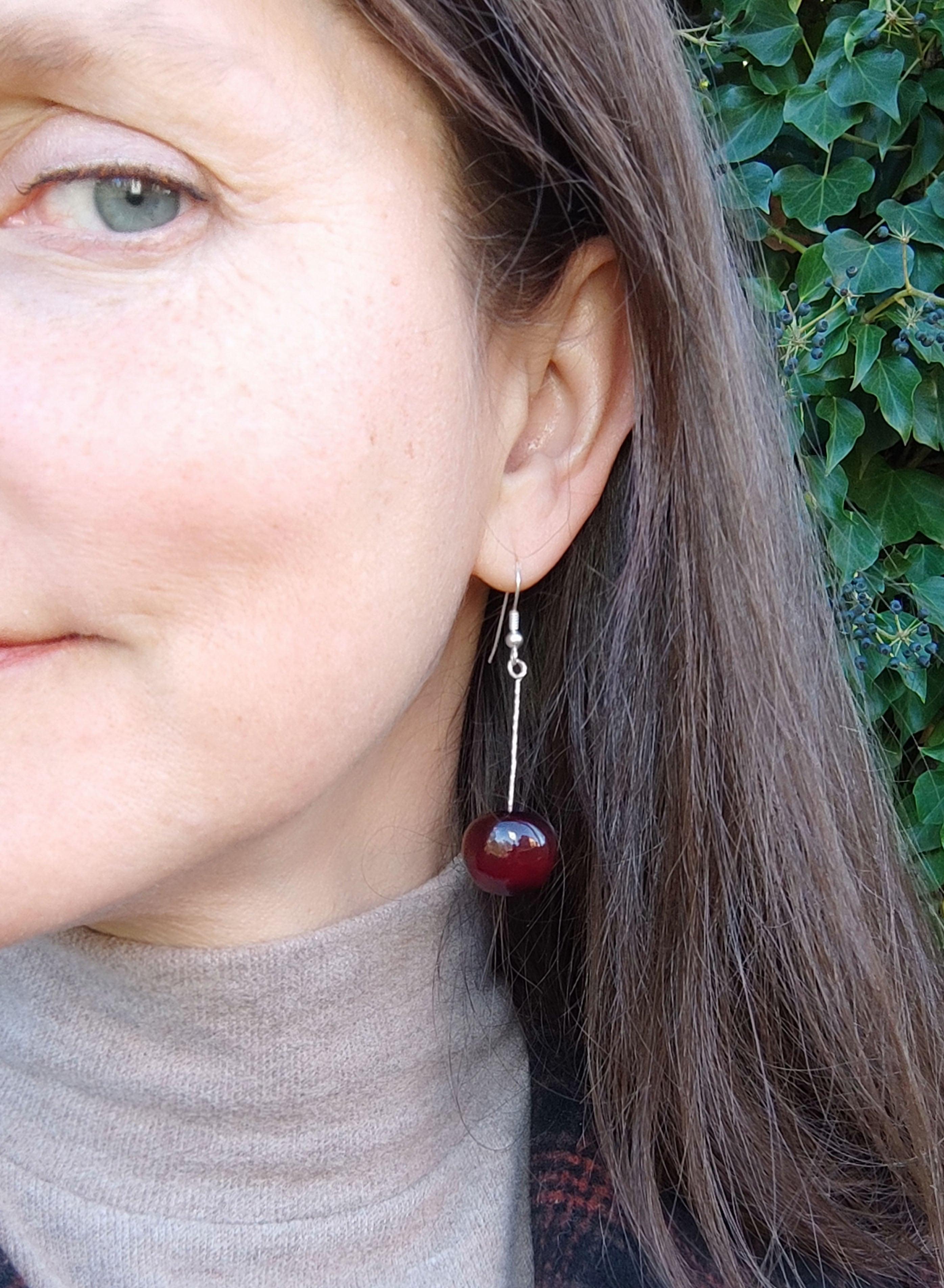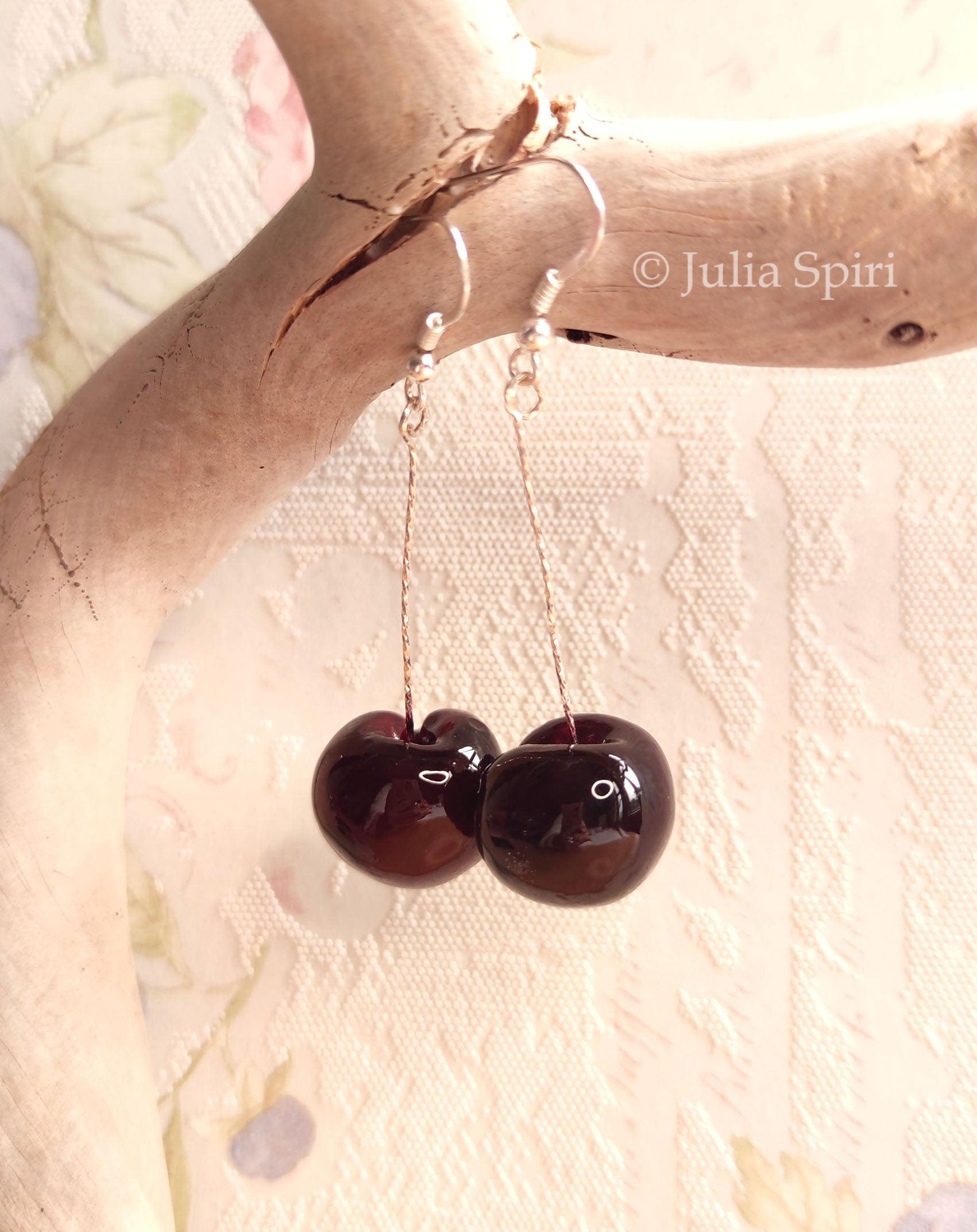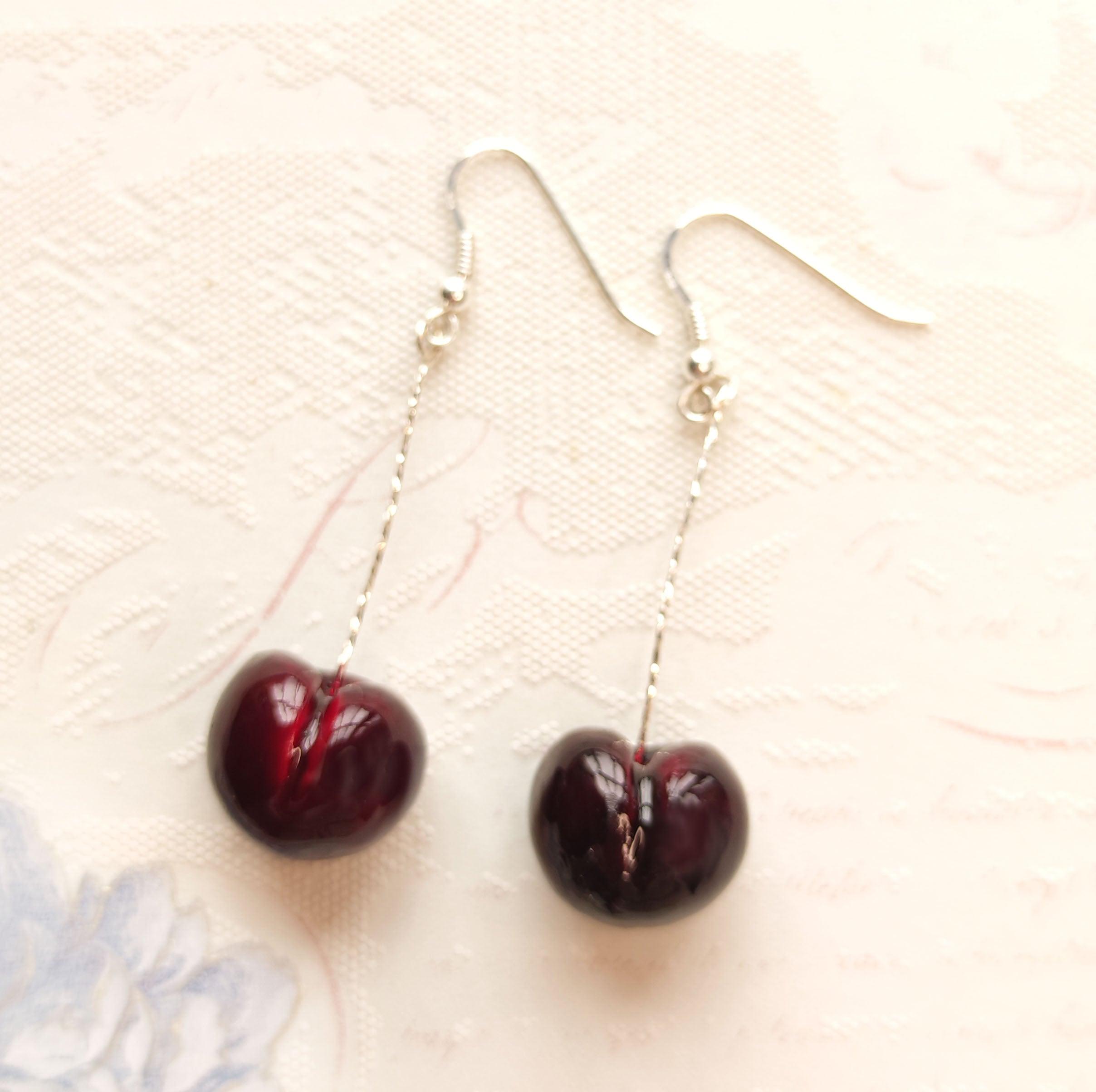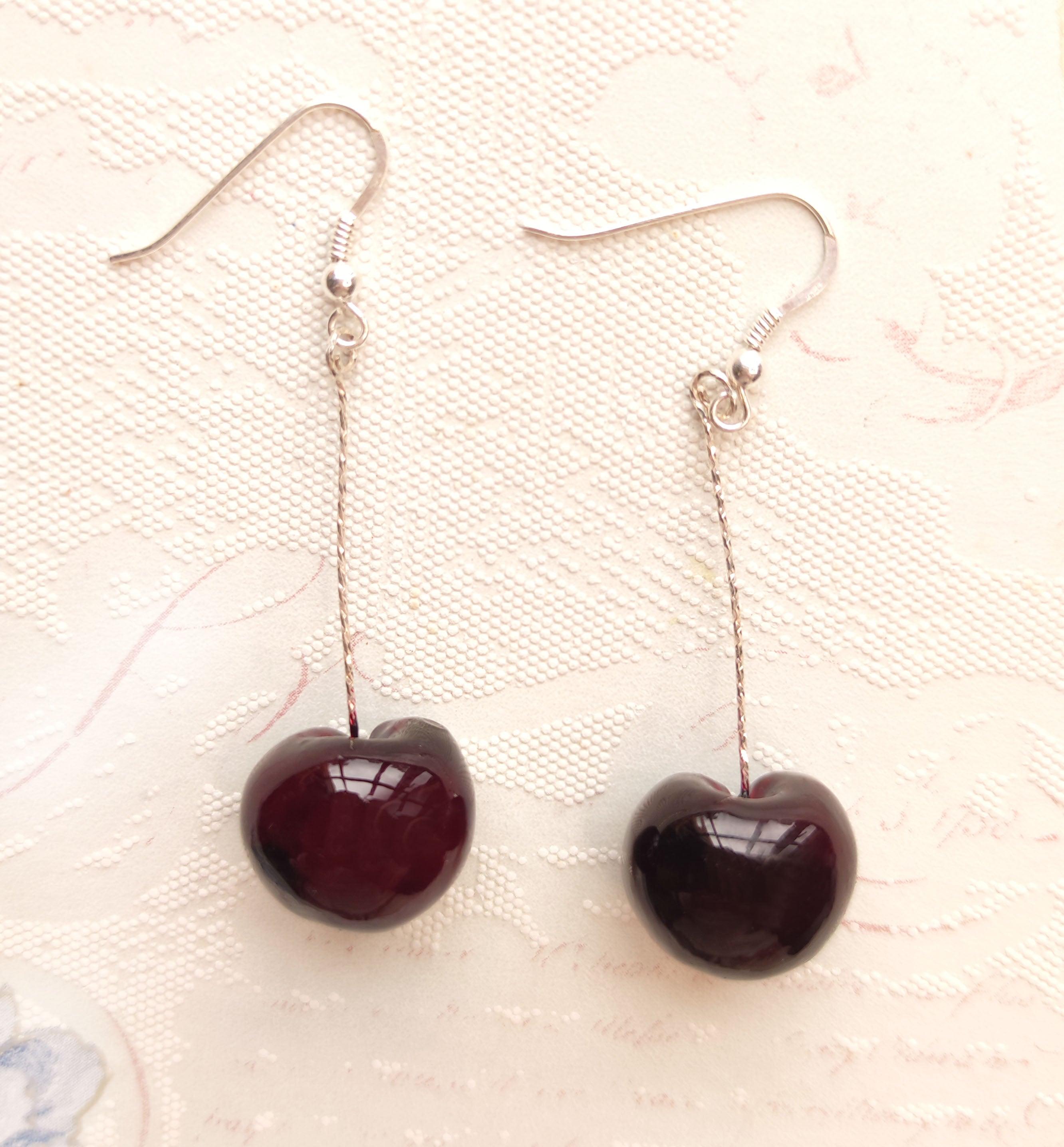 Handmade Polymer Clay Charms with Sterling Silver Earrings. Cherries