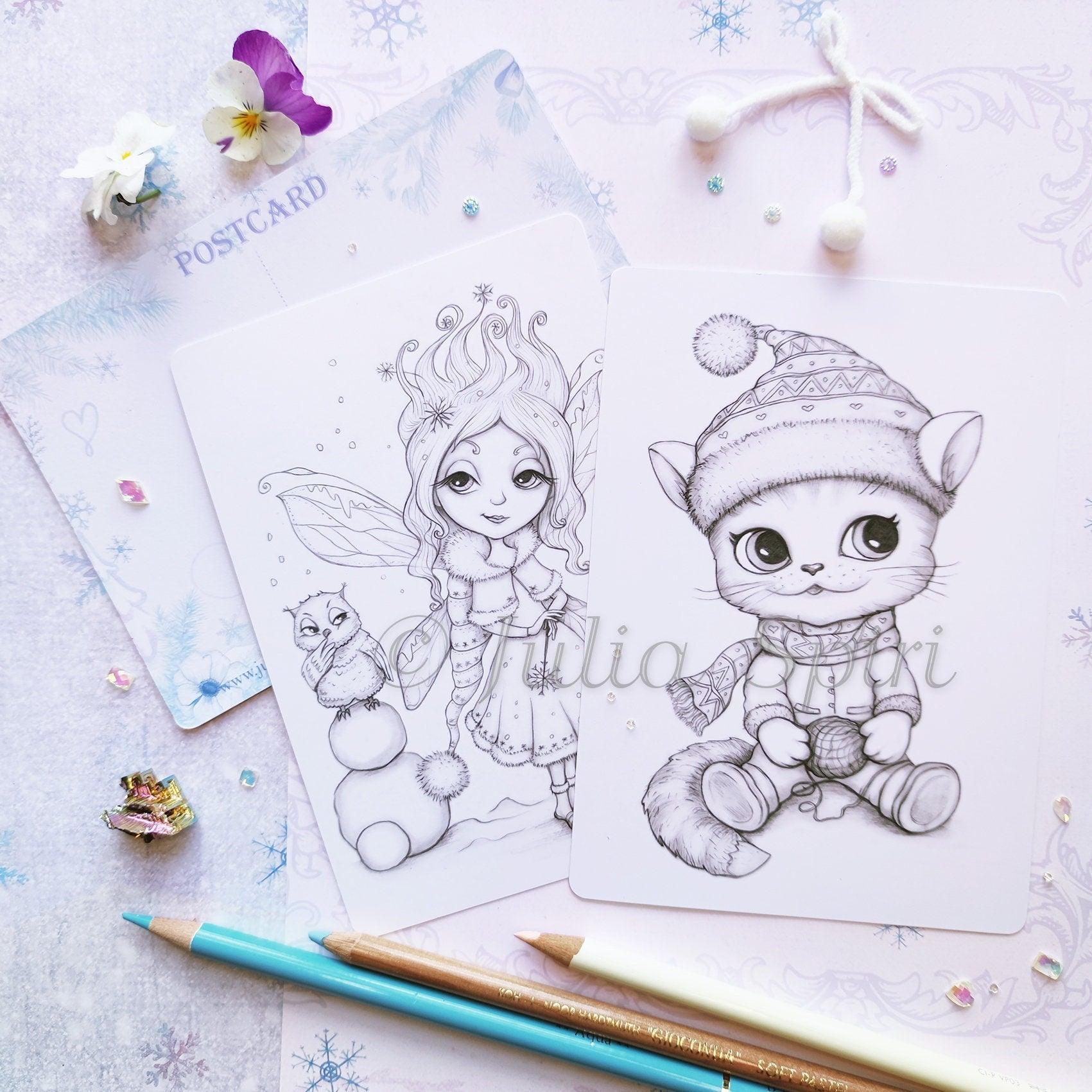 Printed on thick matt paper on both sides. This paper is perfect for any dry technique: color pencils, markers and more.