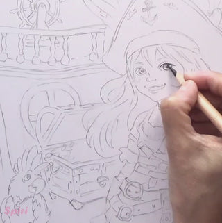 Grayscale Coloring Page, Pirate Girl. Cleo