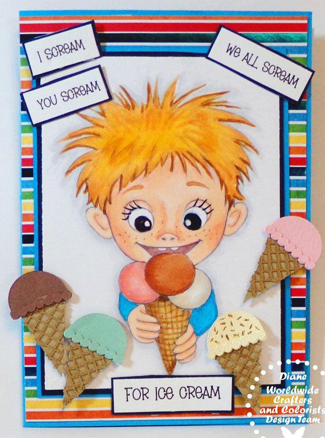 Página para colorear, Kid, Whimsy Boy. ¡Ah, helado!