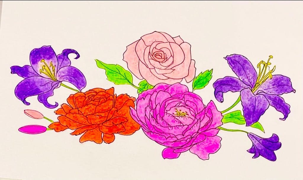 Printed on thick matt paper on both sides. This paper is perfect for any dry technique: color pencils, markers and more.