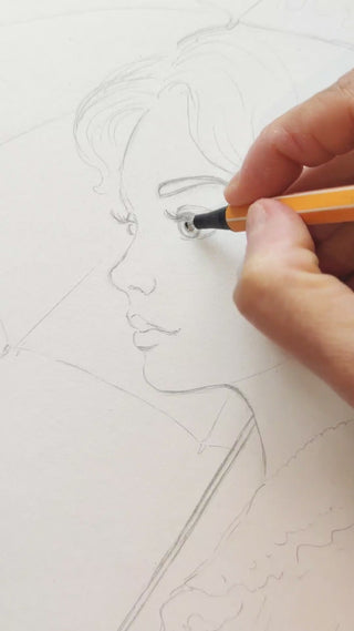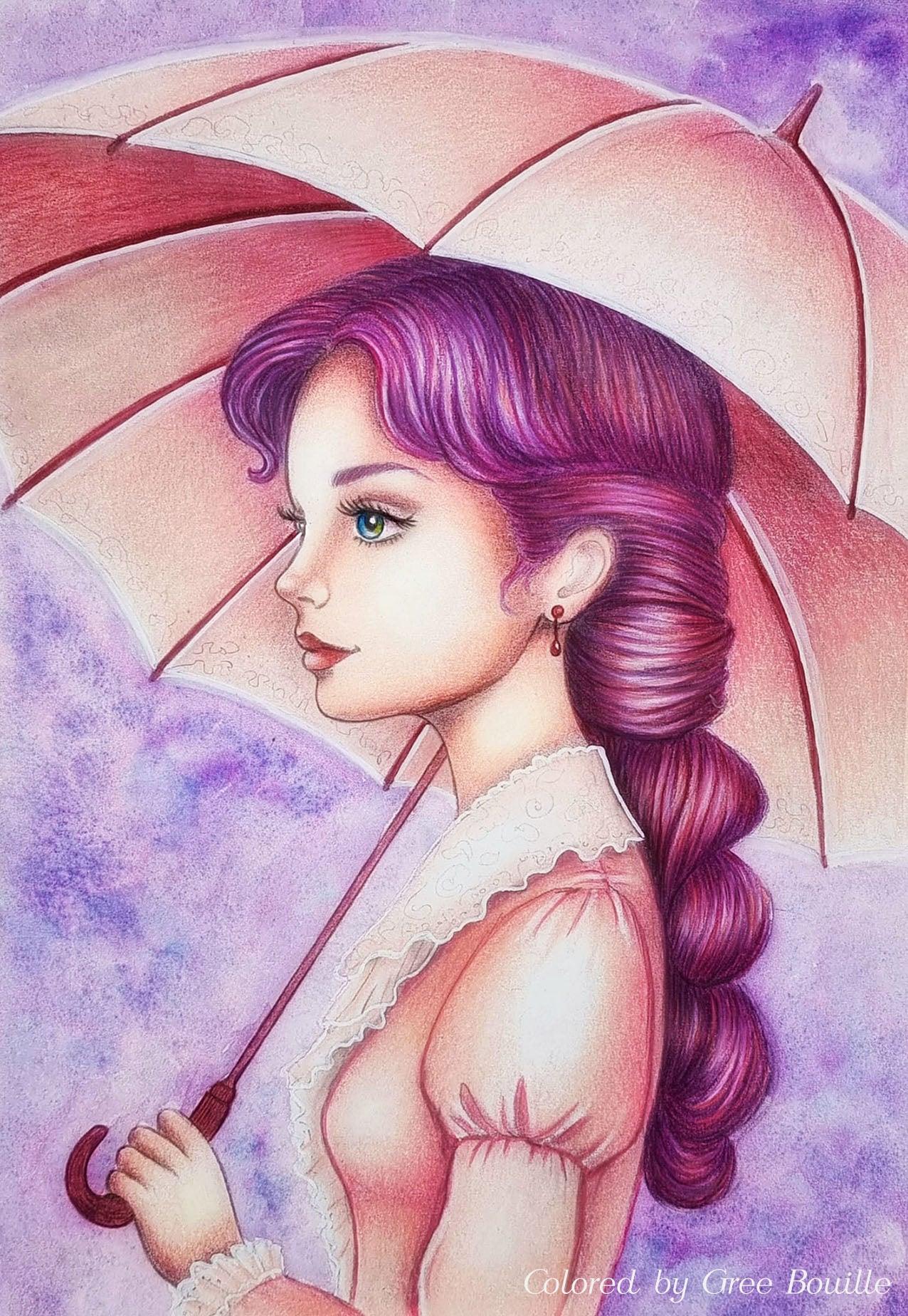 Grayscale Coloring Page, Fantasy Girl. Enchanting Rainfall