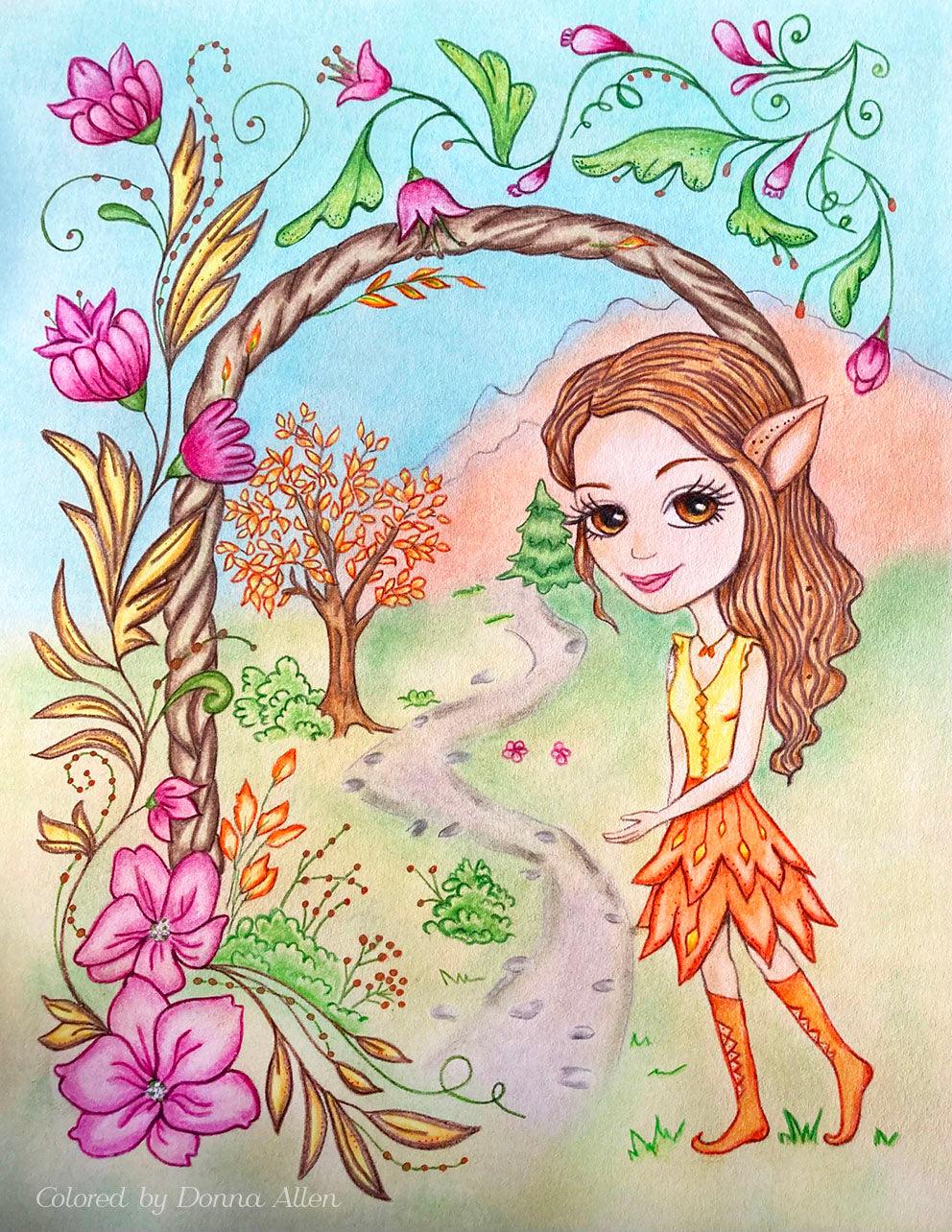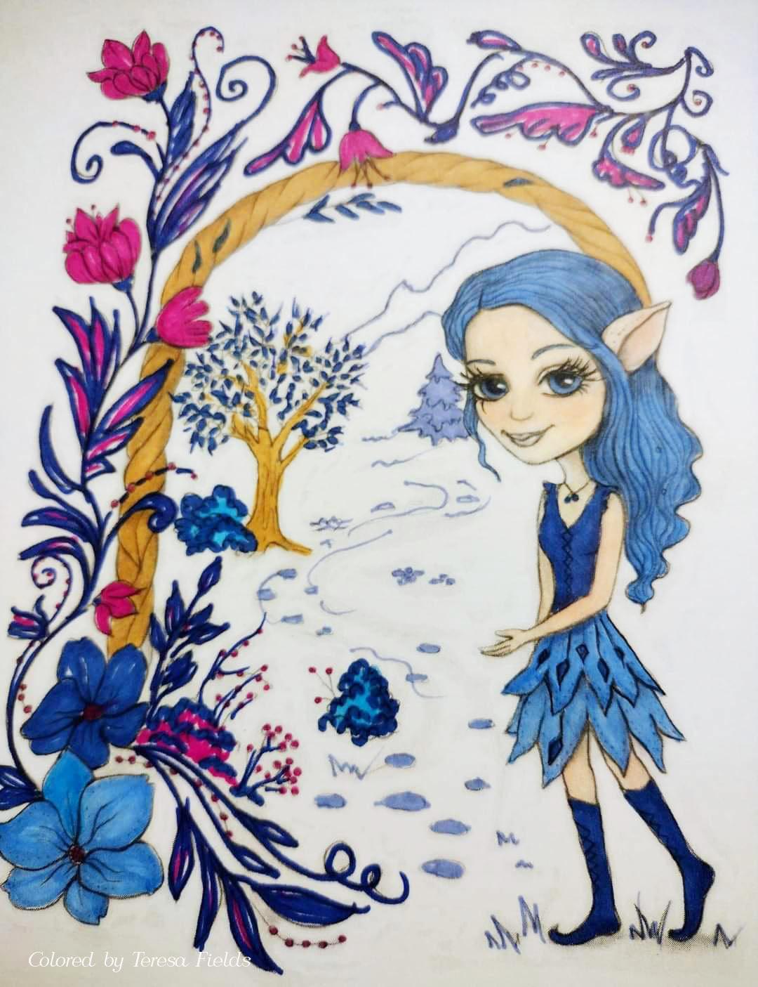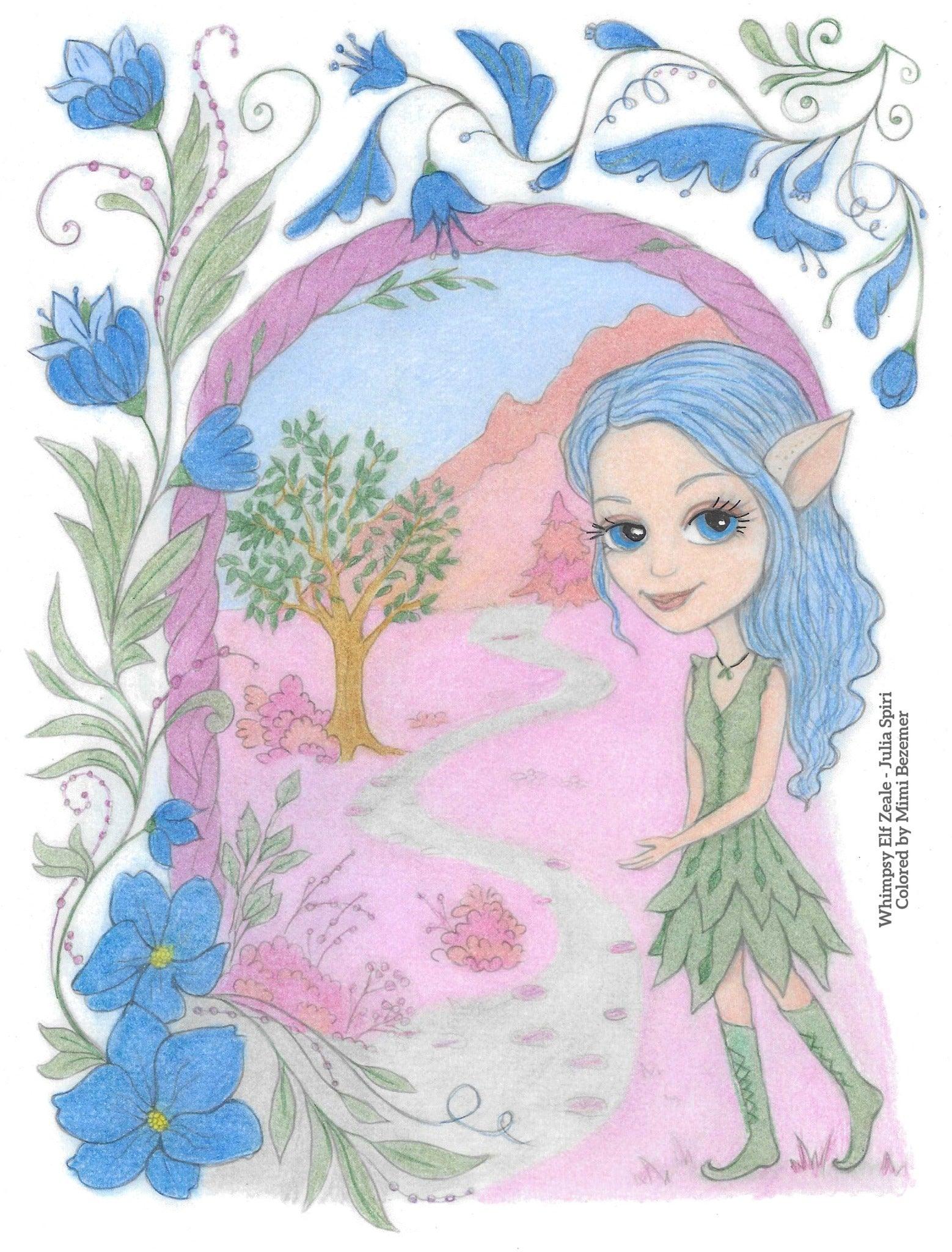 Coloriage, elfe fantaisie. Zèle