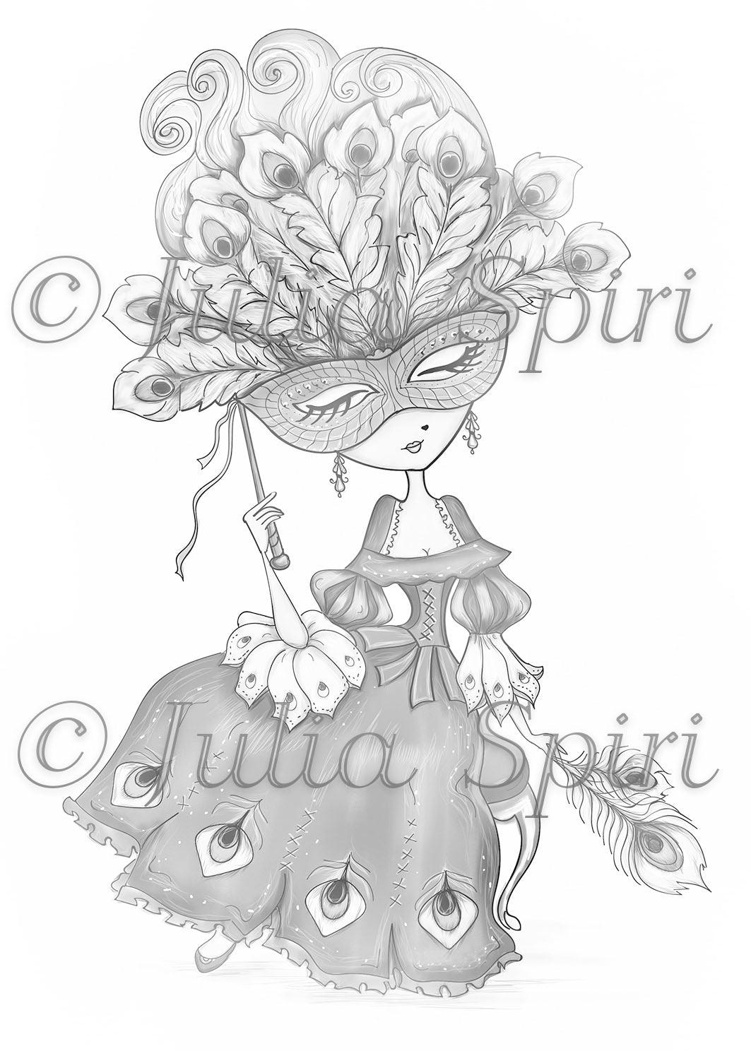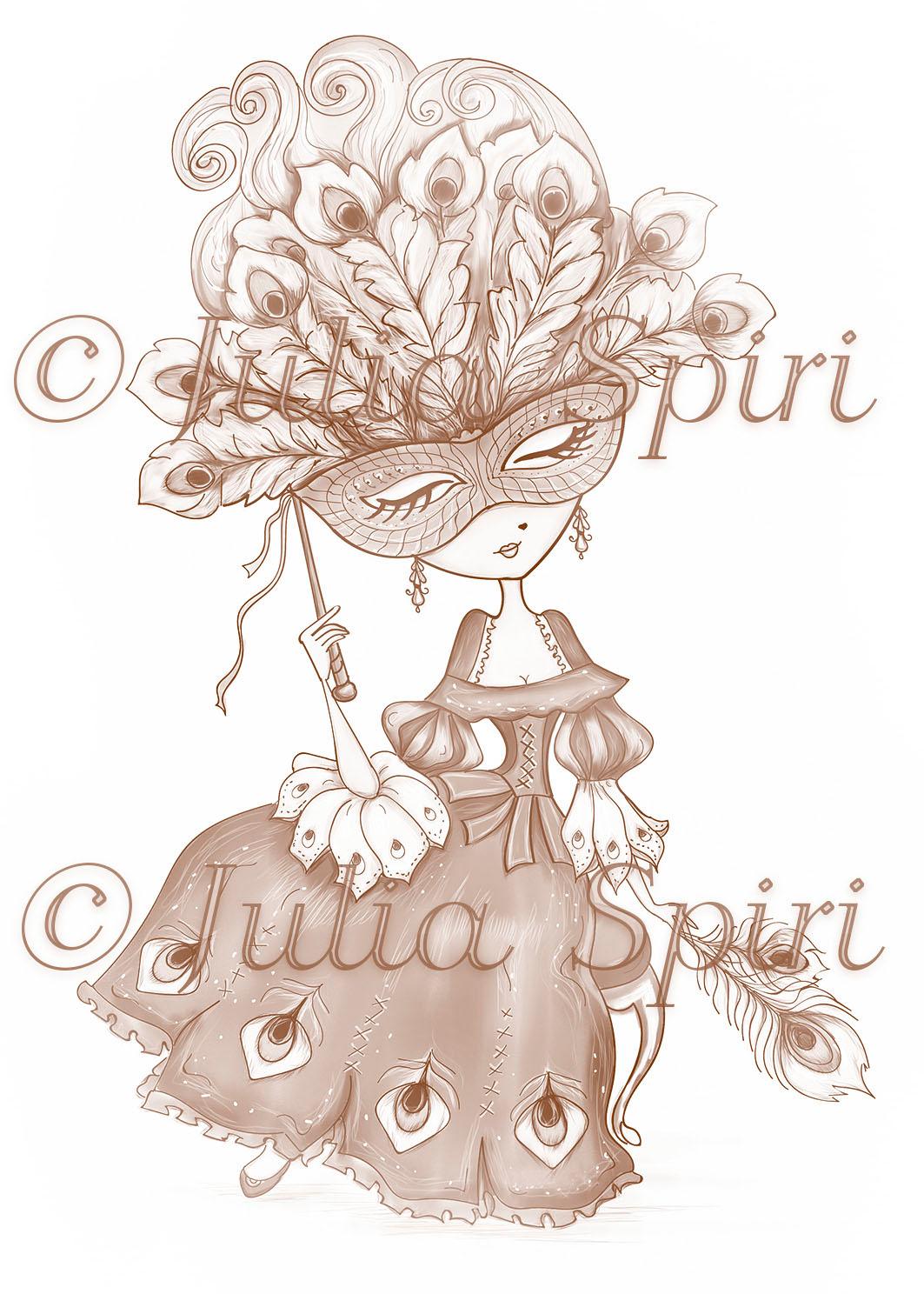 Coloring page, Venice Girl. The Mask of Peacock