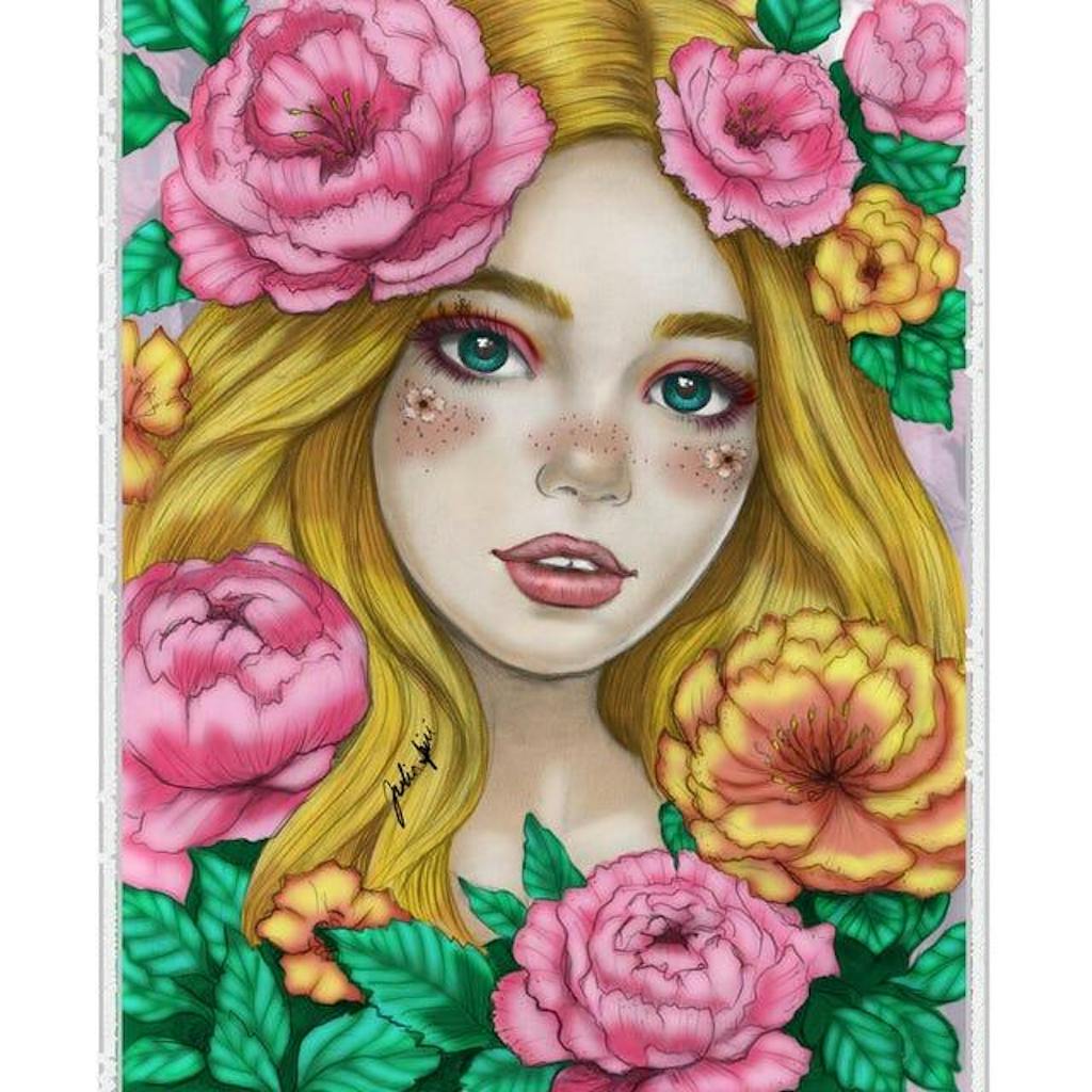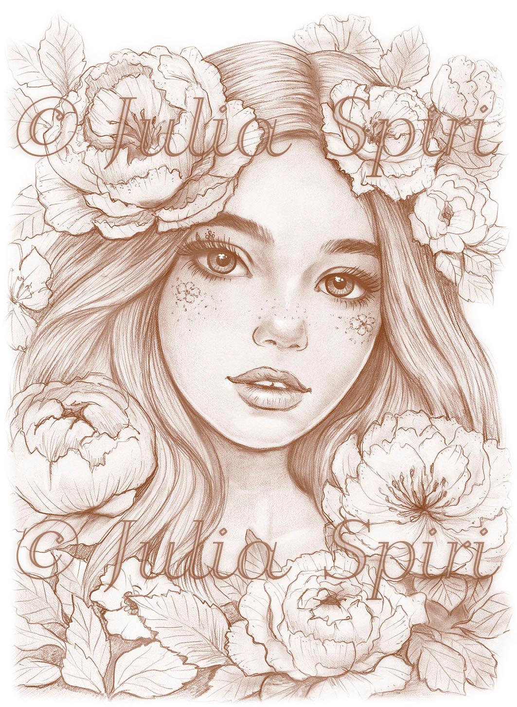 Step into a charming scene with this original, hand-drawn illustration by Julia Spiri. This delightful adult coloring page features a beautiful character waiting to be brought to life with your creativity.