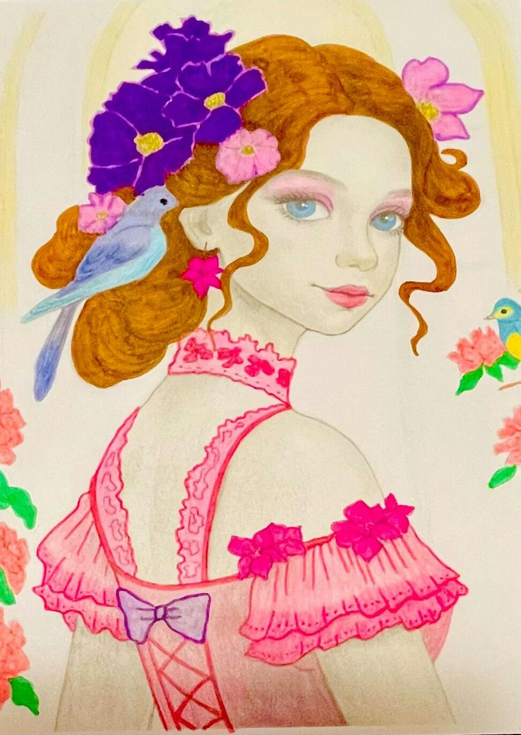 Step into a serene world where elegance meets nature with this original illustration by Julia Spiri. The Birdsong Muse features a beautiful girl accompanied by delicate birds, creating a peaceful scene that invites your creative touch. The soft interplay between the graceful figure and the gentle birds captures a moment of quiet connection with nature. Julia's signature grayscale technique brings depth and dimension to this enchanting composition, making every coloring session a journey into tranquility.